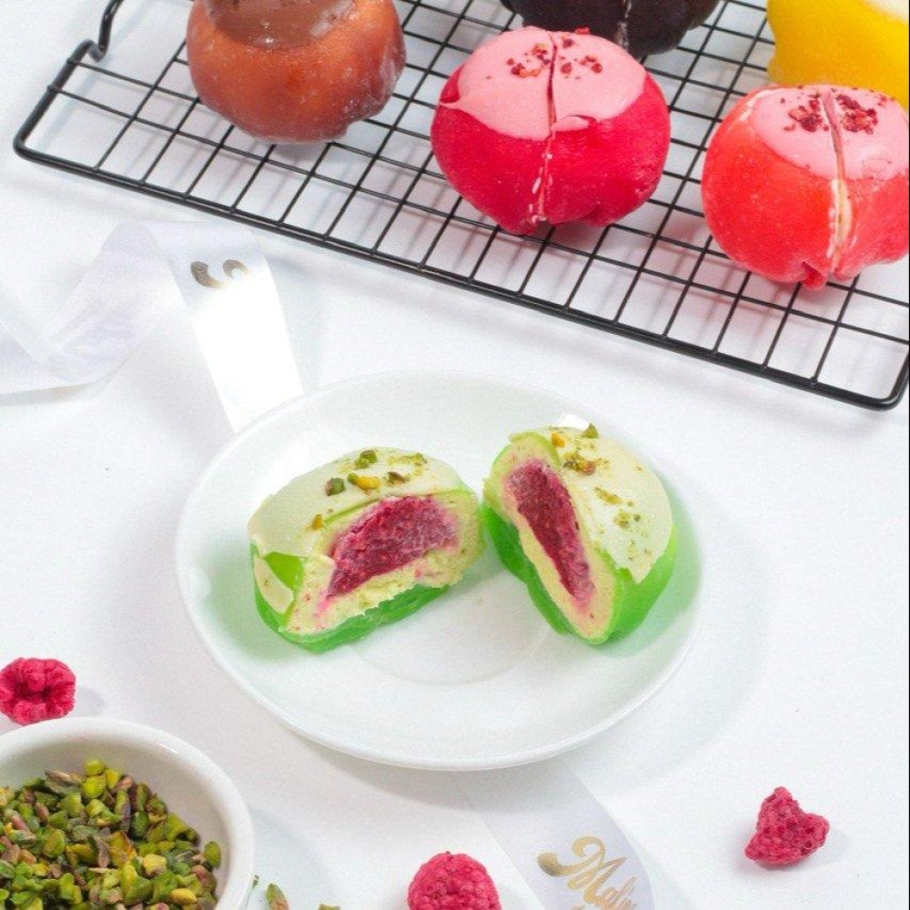 Моти фисташка-малина идеально подойдут для домашних чаепитий, подарочных наборов, кафе и корпоративных мероприятий. Яркий вкус и аккуратная порционная подача делают их эффектным и изысканным десертом для любого случая.